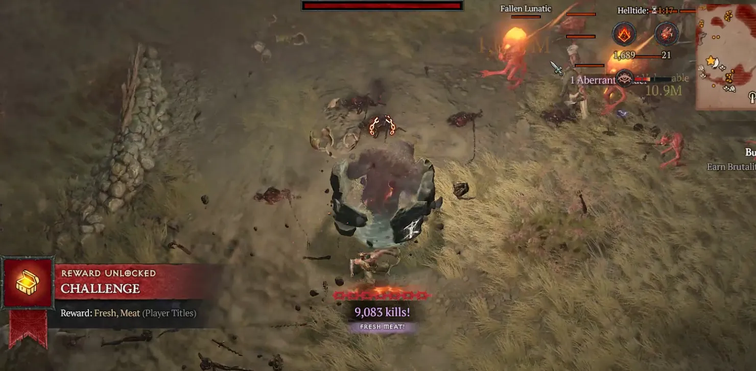 Helltides constantly spawn enemies across the zone, which makes it possible to keep chaining kills without the streak timer falling off. Running loops through dense enemy areas is currently one of the easiest ways to push the counter higher and higher.